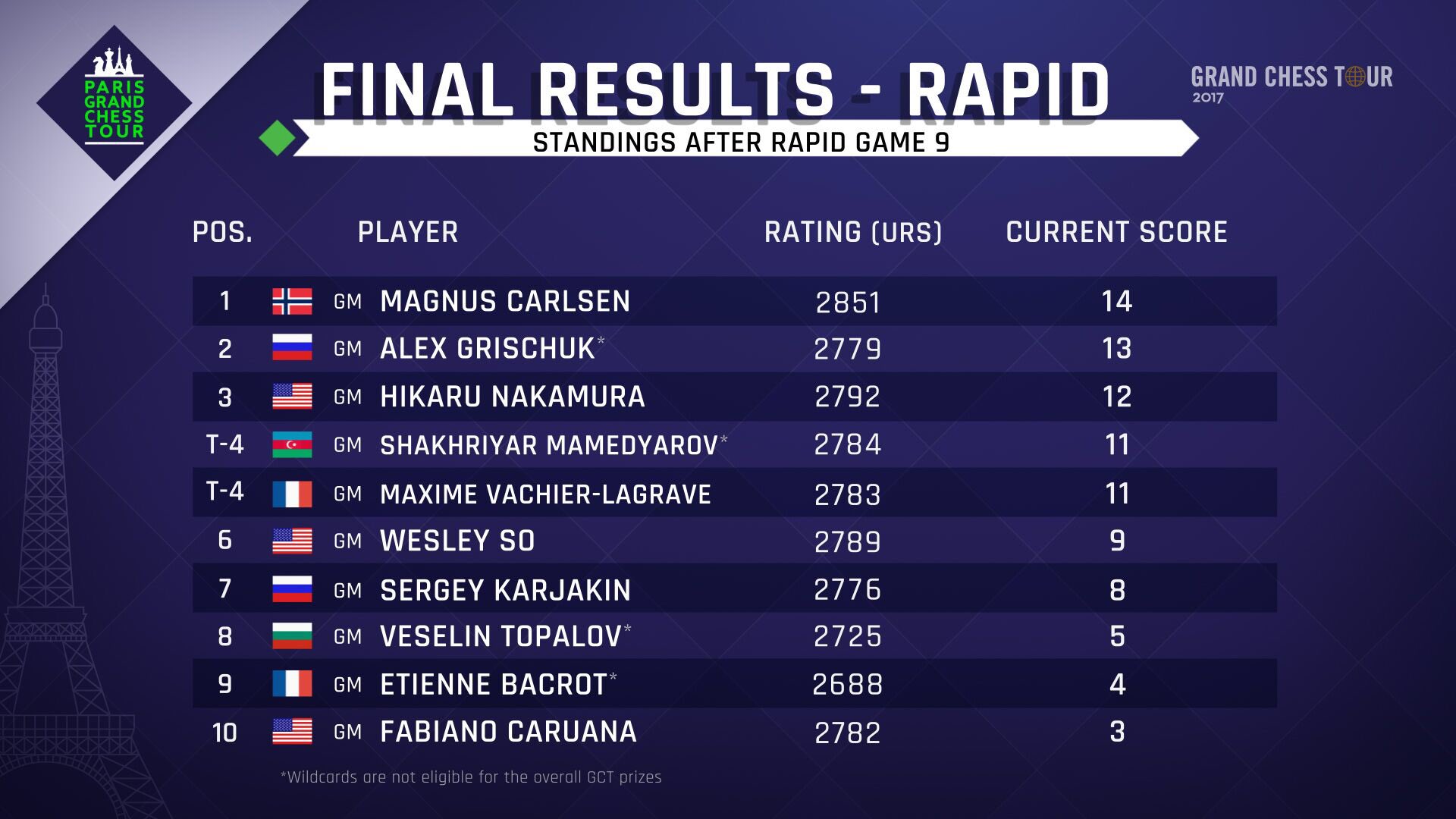 Grand Chess Tour on Twitter "Standings after the rapid portion. Join