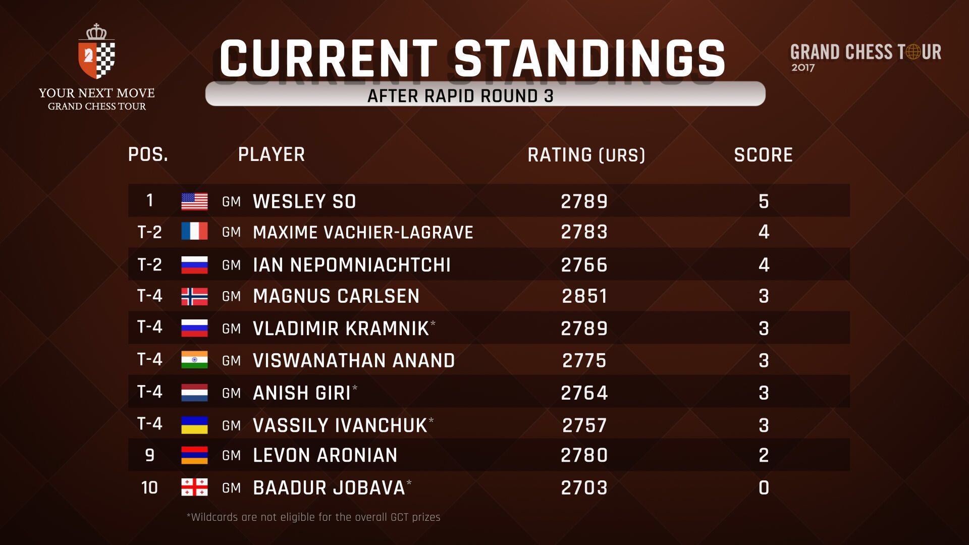 Grand Chess Tour on Twitter "Standings after round 3 GrandChessTour…