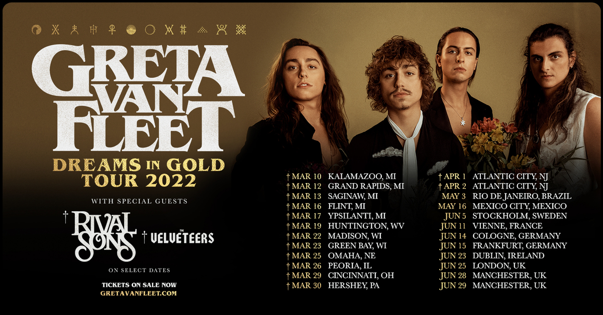 Greta Van Fleet on Twitter "DREAMS IN GOLD TOUR 2022 • Tickets to the