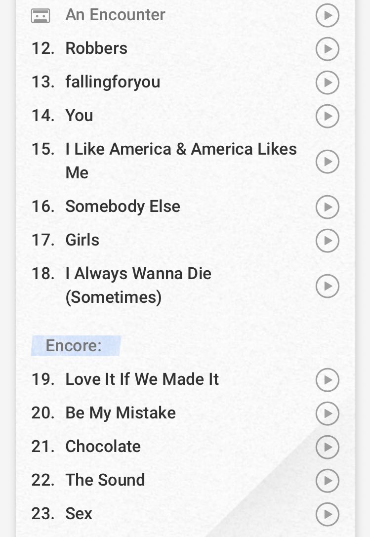 The 1975 tour setlist DIY